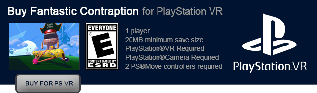 Fantastic Contraption was a launch title bundled with the HTC Vive and is also available for Oculus Touch and PS VR. Download screenshots and more at our presskit or contact us at FantasticContraption@gmail.com.
